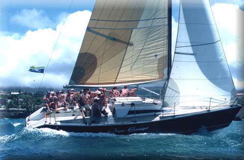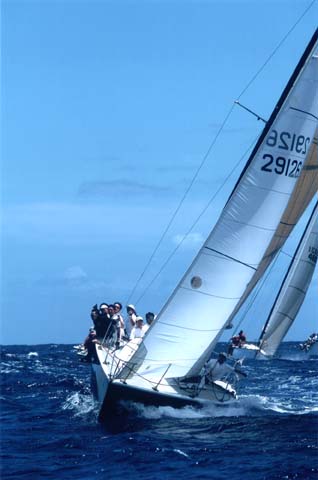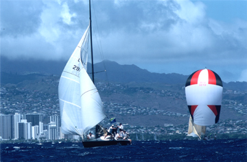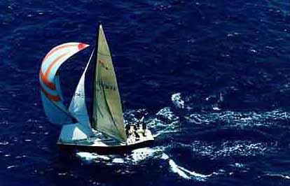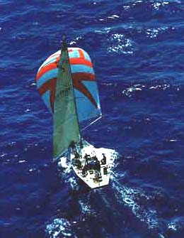 メインは、代用するハリヤードがなく 上りも下りもジブのみ 特に下りはジブの2枚上げで 観音開き 一応、レースを捨てずに最後まで完走 |