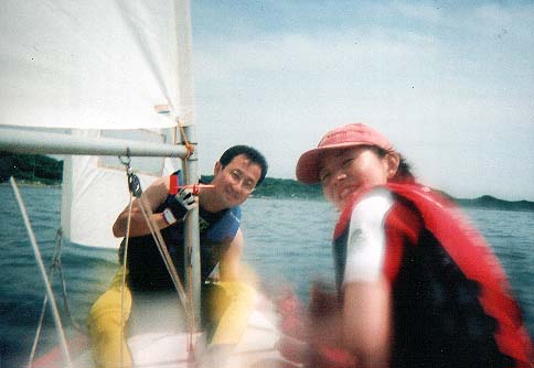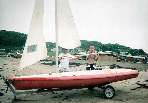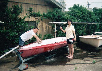最初はこわごわティラーを握っていましたが 今や一人でもOK! しゃわーぼーいずbabyの共同オーナー。 |