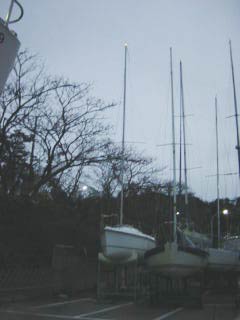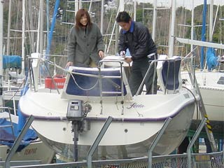 | 12/20 最高気温6度 曇り 徹夜明けの朝、美人新妻からお電話。 「船がね、届いているんだけどトレーラーがマリーナに入れないの」って。 (船台が大きかったので低床トレーラーにて運搬の為) その後、どうにか搬入。 大至急、マリーナへ向かうものの徹夜明けは辛い・・・ 眠さのあまり道を間違えてしまった。 現場に着くと。 見事しゃわーぼーいの到着済み!! すでに夫妻が清掃作業中。 |