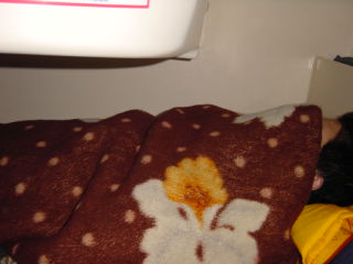 | 朝、目覚めると夫妻は 仕事のため出社。 10時におまる号オーナーが やって来る。 が、大雨の為、作業中断&昼寝。 何故か良く眠れるが、寒い。 発熱中・・・ |