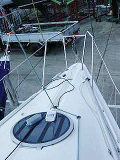 | 航海灯配線中! 一番の問題は船への取り付け 専用の台座を買いあとは パルピットへの設置。 |