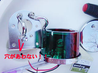 ドリルで2つ穴を開けるか、アイを使ってパイプを包み込んで 締めつけるか。 そこでバウマンIMSさんからアイの方がいいんじゃないと。 パーツ購入のためアイの幅を測ってくれていたIMSさんより 先にホームセンターに行ってしまった為電話で縦の穴の幅を確認 「縦か横か判らないけどそれを買ってみて・・」と 買ったらサイズが違うじゃん!!! 仕方がないのでドリルでプレートに穴を開けることに。 が、開かない・・・歯がポッキン・・・堅い・・・ 結局、近所の船具屋さんに持ち込み開けてもらいました。 |