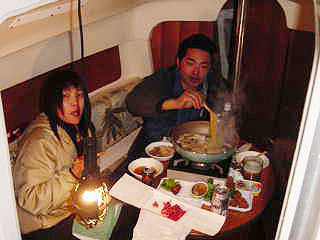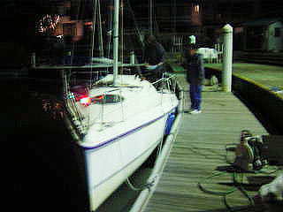| 真っ暗やみの中、海へ。 離岸。 が、離岸中にエンスト・・・ 再始動。 デッドスローで航路を出ていく。 後半間際でちょっと前進をかけてみる。 エンスト。 あれ〜〜〜〜 エンジンがかからない・・・ 本当にかからない・・・ すると近所の人が「どうしたの??」って! 「エンジンがかからないんです・・」 「何処???曳航してあげるから」って。 お言葉に甘えてきました。 その曳航中に美人人妻は星がキレイっておっしゃってました。 |