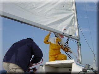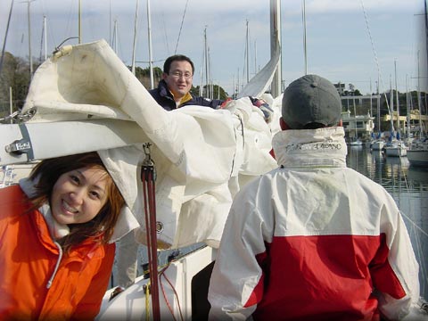 仙台から上京。IMSさん。 初めてセールをセット!!! (本日はダクロン小メインとパタパタジブ) 別名・NO3?ジブ |