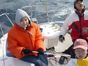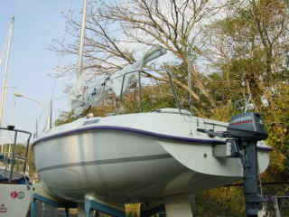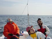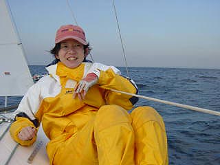 | メインもジブも無事にアップ 思ったより速い!! 軽い上り(本当に軽い)で5.6ノット位 アビームでの最高は7ノット!コンスタントに6ノットを超える。 しかもエンジンのチルトアップが良く判らなくて エンジンが水の中に降りたままでなのに… 感覚としてはディンギーと変わらない。 ブローが入れば思いっきりヒールしてラルでは いきなり船が起き上がる。とっても船が軽い! |
