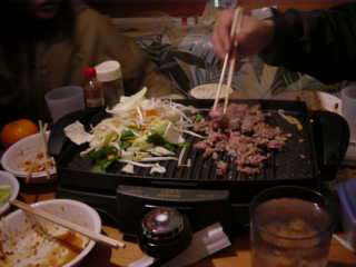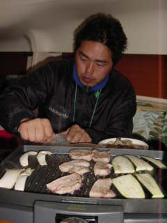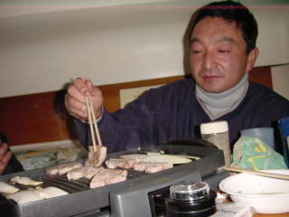 | 上の写真は夫婦揃っての共同作業 今夜のメニューは焼き肉。 夜は3人で仲良くお泊まり 電気ストーブを一台追加したら 結構、暑くなる程でこの日は 独り身の僕も暖かく眠れました。 |
