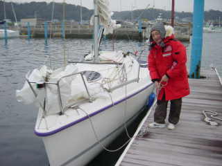| 03/01/18(土)晴れ 気温13度 風 北東 9m ヒールさせてはいけないフェスタなので ワンポン&NO3ことパタパタジブでセーリング! でも、美人妻のお茶(ペットボトル)だけ ヒールして海へ・・・ わざとではないの。。。 あ〜ごめんね。 |