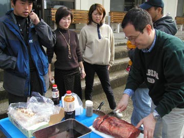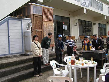 | しゃわーぼーいオーナーから挨拶。 しゃわーぼーいの由来については <しゃわーぼーいず秘話> をご参照下さい。 左・共同オーナー紹介の図 こういう時の司会進行役は エスカルゴ時代からIMSさん。 (宴会部長・現在仙台支社!?) |