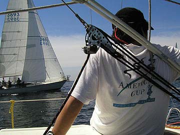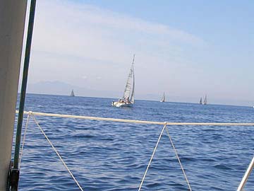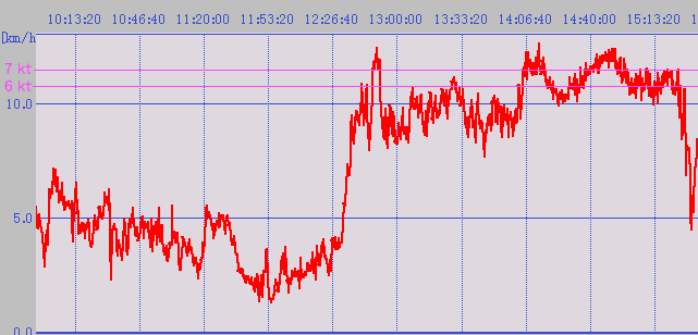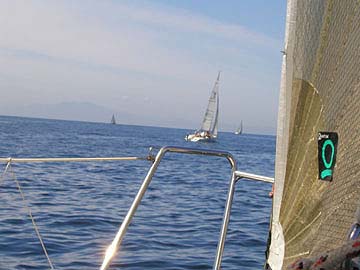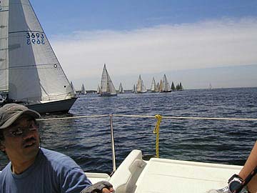 9:34 ようやくFwindが見えた。 が、あちらの方が艇速が若干ある。 |