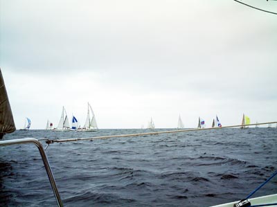 さすがに合計55艇のレースは久々。 どこからスタートするかと言えば! 勿論、プレスボート側!! のつもりでしたが プレスボートに近いアウター側の方が有利。 そちらに皆様が集まっていたので 本部船からスタートを決意。 長いのにこんなところから ブランケ攻撃にあっていたらひとたまりもない。 |