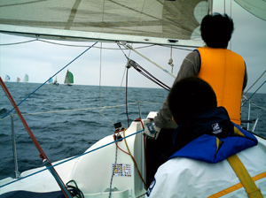 やはり大きい船は速い!同じAYCのSPRINT9.5。 こっちは一生懸命スピンランなのに スピン無しで同じところを走っている。 |