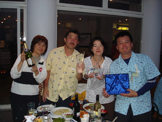 ハーバーに帰るとみんながニコニコ笑顔で待っていてくれました。 今年は花○のバカヤローおじさんが居ないから 大丈夫かと思いましたが 船を降りると笑顔が揃って動き出した〜 私はハーバー二階で温かいコーヒーを準備に。 << 左の写真をクリックでドボンになります。 |