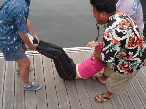出航前に毎度おなじみお騒がせSPLASHが エンジン不調で曳航しながらの出航となりました。 |