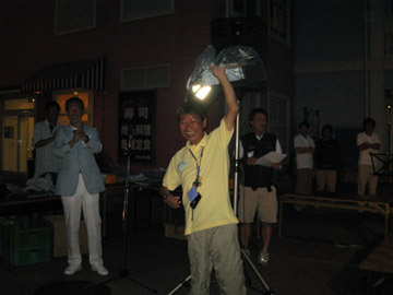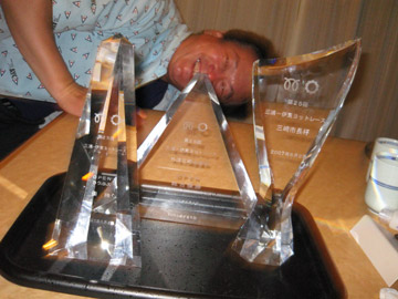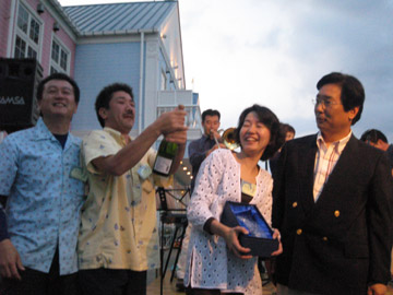 ![]() フルフルさんが用意周到?に 持ってきてくれたシャンパンを片手に 日頃表彰台に行かない私も一緒に表彰台へ。 が、しかし開かない… あげくの果てにコルクが!!! 今回で二度目の三浦市長杯 一番右が三浦市の吉田英男市長 ![]() ![]() |