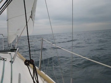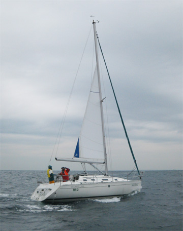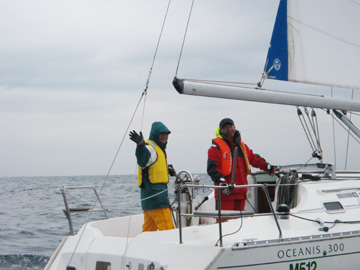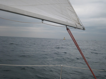 風もよく!?スピン無しフリーで5ノット後半。 おまるは今日風無いね〜などと言っていた。 帰りがちょっと心配。 あと、黒潮の分流が北上中。 本船が南西ブイより北側を航行中。 一瞬自分の場所がわからなくなりました・・・ |