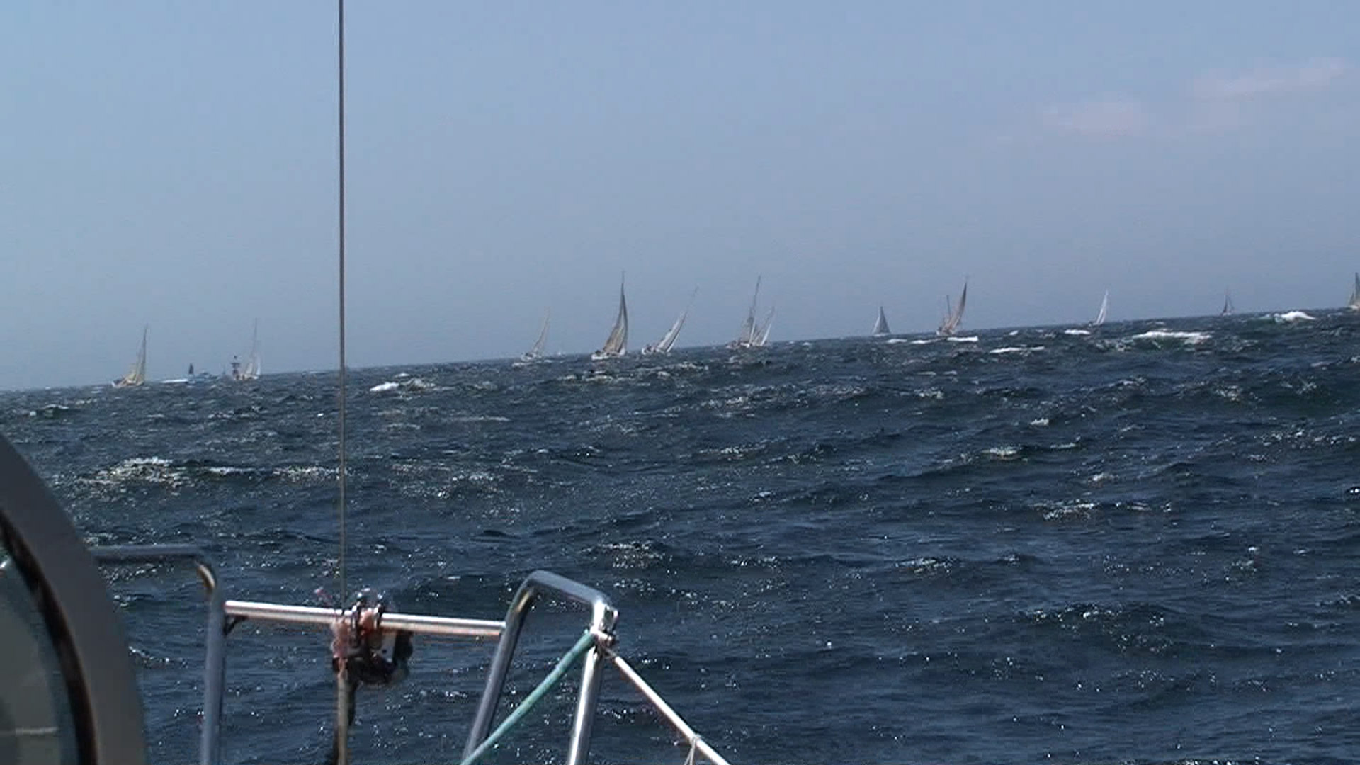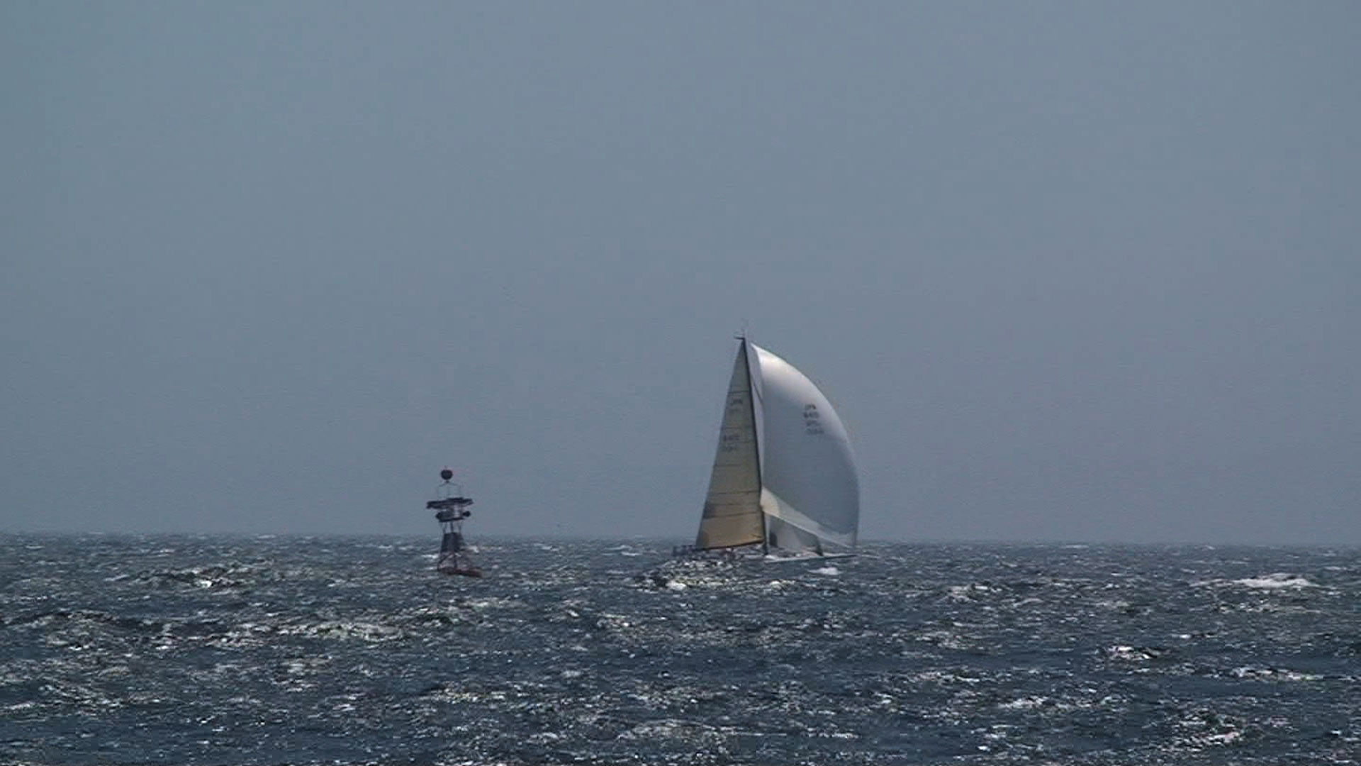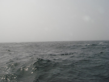 時間通りに海面に行っても 視界不良でスタート延期しなきゃ行けないだろうから スタート時間を1時間延期決定。 1時間待ってもどうなるか不明。 ハーバーではビールの空き缶が増えて行くチームも(笑) そしてスタート1時間半前に海面へ。 全然、見えない。 壷、出口の網を越えると岸も見えない。 小網代浮標はどっち〜〜〜!? 大工KさんにGPSを見てもらいつつ、 風向でしゃわぼーをアンカリング。 三戸浜の網に近過ぎというので、またちょっと打ちかえ。 そうこうしているうちに、霧が晴れてきた。 |