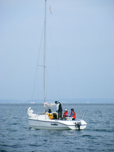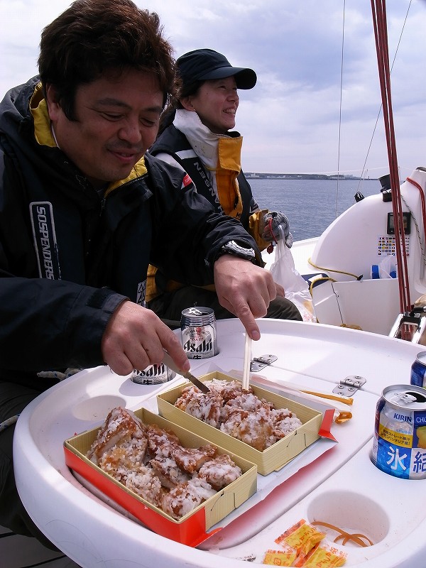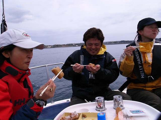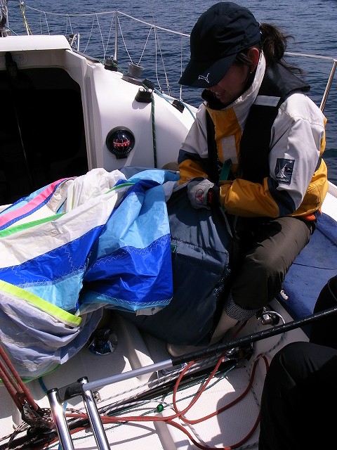 城ヶ島をこえて、ジェネでビュ〜ンと行こうと!! が。風がない・・・ 結局、おろしてエンジンでのんびりと行く事に。 ![]() このとき既に、吸込み隊長は、何本目に突入したんだろう!? ![]() ほとんど機帆走でトロトロと時間調整しながら東京湾横断。 |