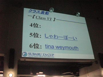 | 夢の島ヘ着いて、帰着申告は3番目。 やっぱり前にY23のイーグルさんなどなど。。。 その後のパーティー前の噂では4位都の内示。 結局、5位でしたけど。 微妙な成績だけど、6位まで入賞で表彰されたから良かった〜 |