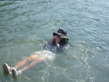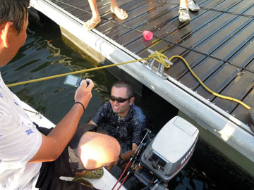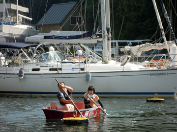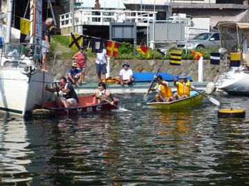 いざ!スタート。 対するは元会長チームこと、仙人。 コースはポンツーンから、黄色いブイを回って戻るもの。 我がしゃわぼーチームは、何故か!?直後、アルカンに激突。 その後・・・ |
