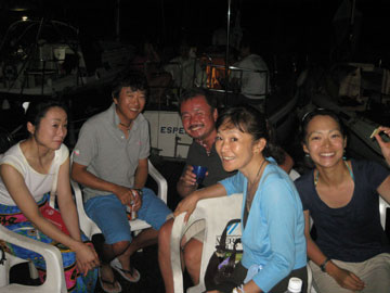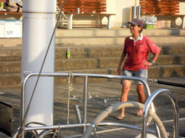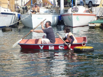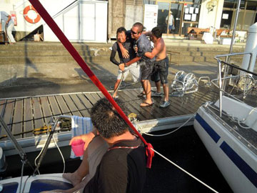 無事に体験乗船が終わると。 第一回テンダーレースの準備。 救護係として、テンダー(エンジン付)に乗り込む。 トロフィーはこれ! うちは、二人が理事で行事に全く参加出来ないので 呼んだ助っ人をしゃわぼーチームとして参戦!! 本当はよしさん&リキのペアーかと思ったけど よしさん・アスミンペアになっていた(笑) |