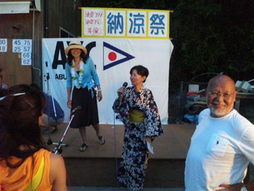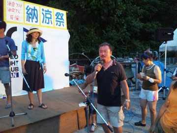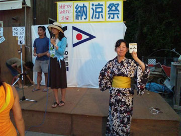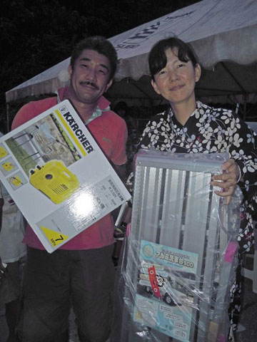| そして恒例のビンゴ大会。 今年は高圧洗浄機が景品としてあり! ちょっと欲しい〜〜 なんでも使う!?使われる!?しゃわぼーは、 ゲストまでも使い。 ビンゴ大会の司会にゆうゆ! |