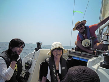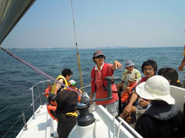 | よしさんとアスミンは、 そのまま拉致してちびっ子体験乗船に参加〜 私もさち風に同乗。 |