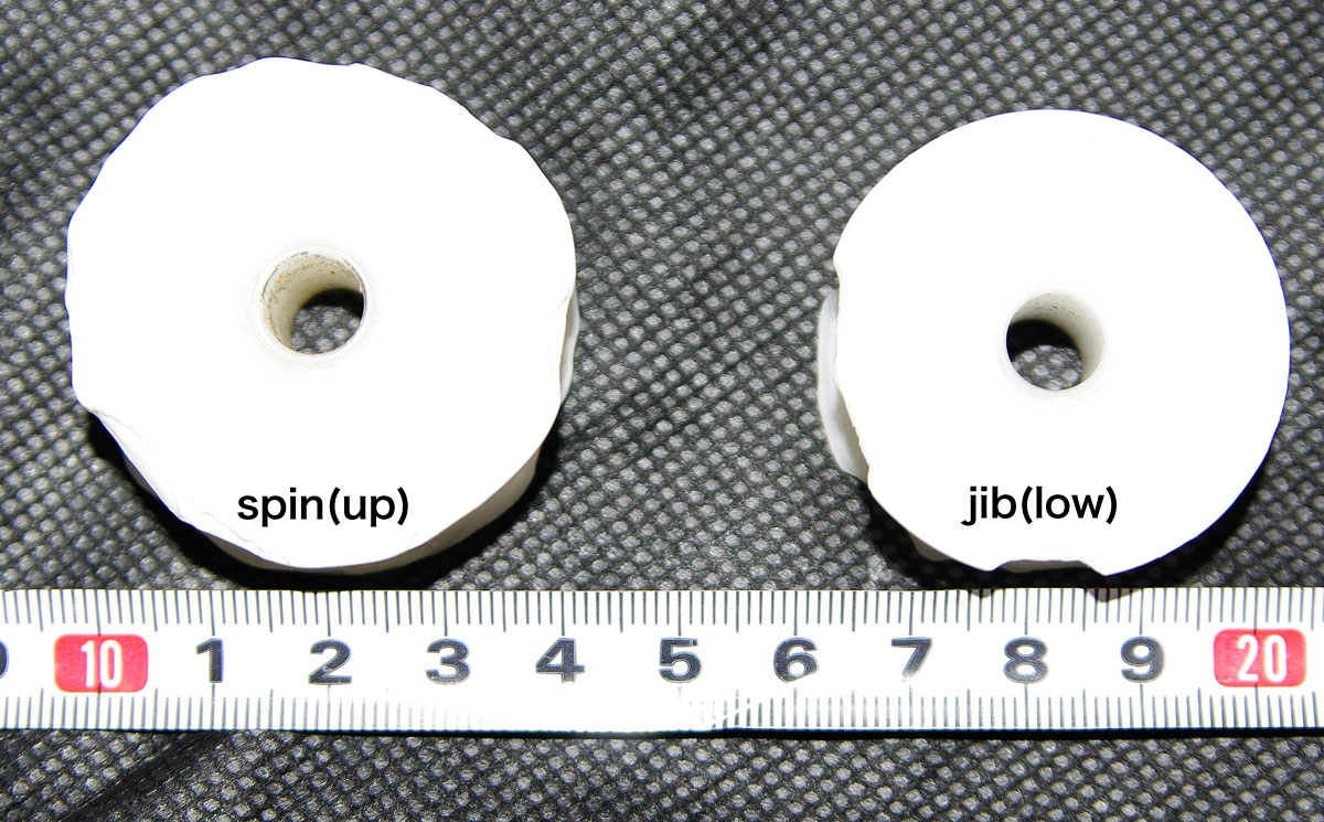 ジブよりも暴れるスピンの方がボロボロ。 これから、純正品が無いので特注!?します。 フェスタ24のオーナー様、 素人実測であてになりませんが参考程度にご覧下さい。 |