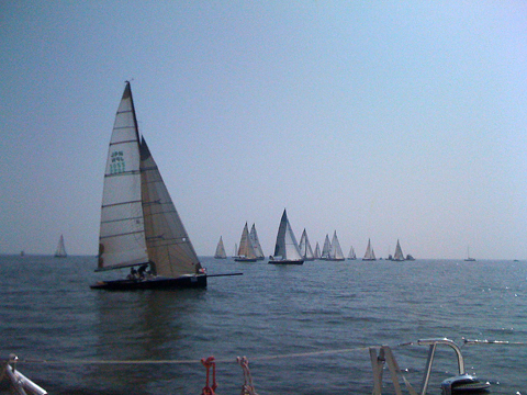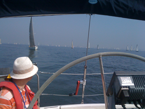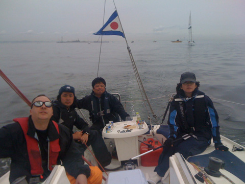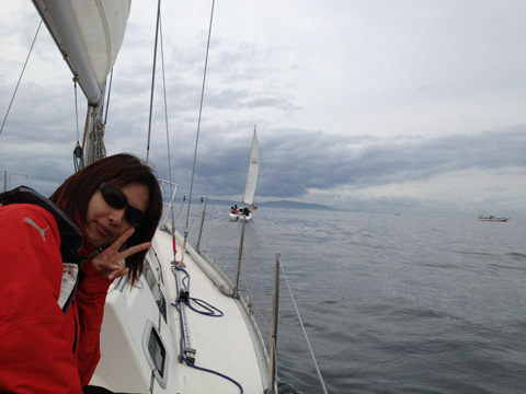 | 両側をスピンで走る船に はさまれたりしたけど、 無事にフィニッシュ! 一応、近辺にいたのはうちよりも レーティングの高い船だった、よね? と確認。 えへへ。 結果は、40艇中8位! 上出来、でした。 風が味方してくれたもんね。 やはり、練習の成果プラス 日ごろの行いでしょう。 |