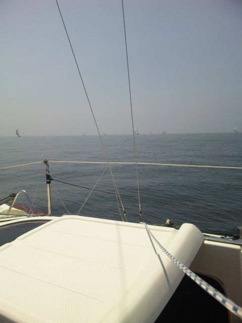 | 風よ吹くな〜!の祈りが通じて、微風。 東よりの風1−2mくらい。 とかいてみたが、 風向風速などの詳細は私を当てにしないでください。 レースのコースはディズニーランド沖スタート、 海ほたる手前のマークを回ってスタートのところに戻る、 約16マイル。コース短くしたから14マイルかな。 参加艇数はAクラス33艇、義船、 ウィングスはAクラス。 |