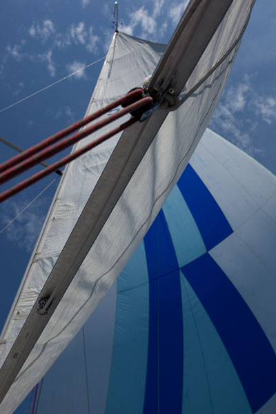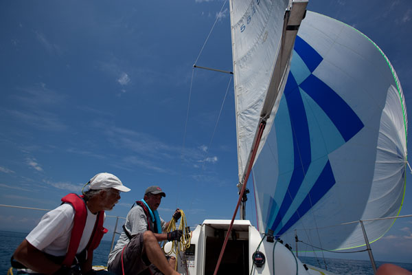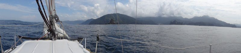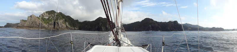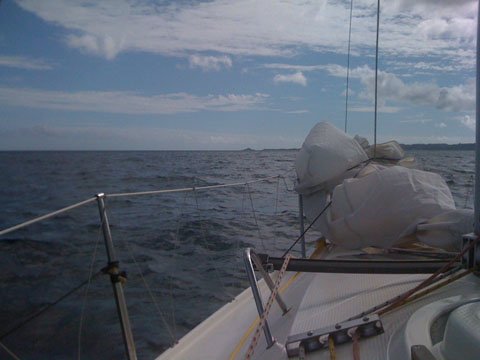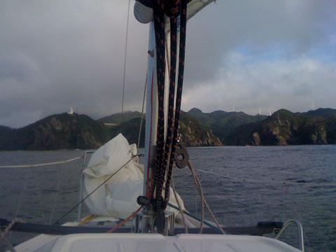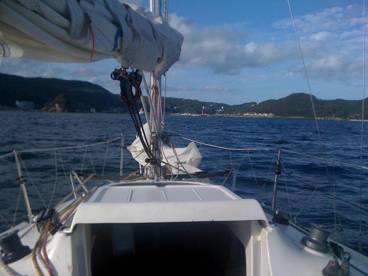 大瀬崎へ向かっていると風も徐々に上がり15kt超え。 ランチ終了後、そこそこキツくなってくる!? ジェネカー上げて15〜18ktのアビームはキツイ。 しかも、3人だし。 で、大瀬崎をかわしたところのブローで 毎度おなじみブローチング祭り開催〜〜 レース前にやぶきたくないからジェネ撤収〜〜 |