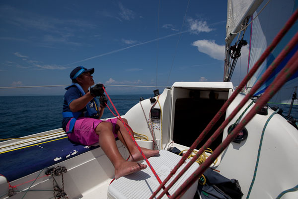 晴れ気温32度 風 南西 平均20kt (MAX29.5kt) 波高1.5〜2m 乗員 3名 仙人・香田さん・私 |