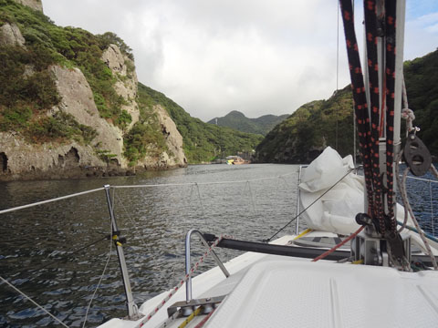 | 門脇付近で少し、風も収まり18kt。 と思ったのは一瞬で 結局、稲取をすぎるくらいまで 20ktオーバー。 城ヶ崎の吊り橋では 観光客に手を振りご挨拶〜 |