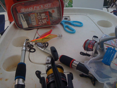 | WEBで何が釣れるんだろうと見ていたら、 アオリイカと書いてあったので、 時期が少しずれたかもしれないけど、 是非!イカ刺しが食べたいと、 急遽、イカの仕掛けを購入〜〜 以上… |