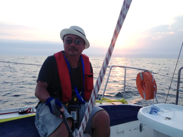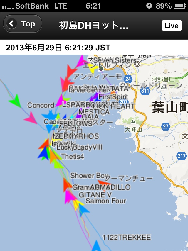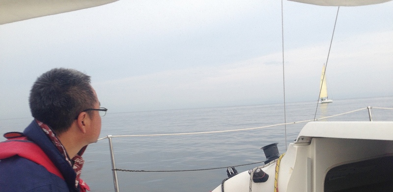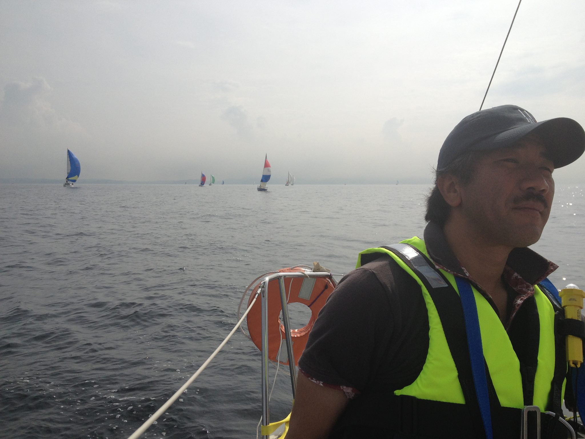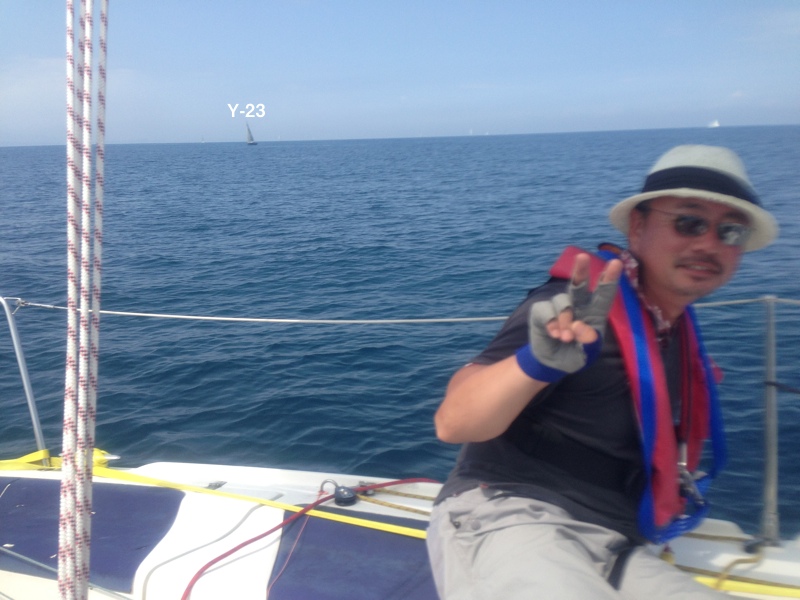 sail-vision確認中のよしさん。 ※今回、通信に関する制限はありません。 回りをみても、sail-visionを見ても む・ふ・ふって状態。 でも、上りが無いわけないんだァ〜〜 と二人で話し合い中(笑) でも、このポジションは嬉しい。 が、風が落ち始めている。 南に出たいが、まぁ、それも無理〜 |