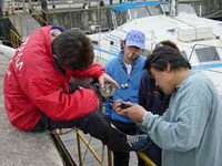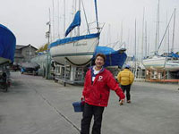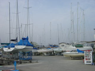 | 道の駅もマクドもガストもやっていない・・・ 先方に電話するにも早すぎるし・・・ 10時半に待ちあわせ。 待ちあわせ場所はルートピア88。 すっごく奇麗なマリーナでした。 結婚パーティーもやっていて その後、保管してあるマリーナに移動。 |