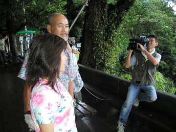 左・フジテレビ系KTS鹿児島テレビの 密着取材が入りました。 でもレースより観光の密着?? |