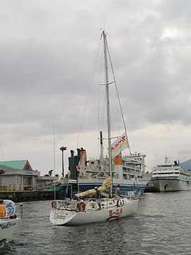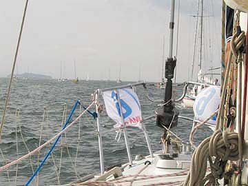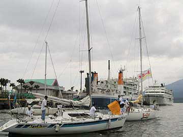 | 前夜祭はフェーリーにて開催! う〜む、、ヨット乗りはうるさいからなぁ。 しかも、それが500人以上?? |