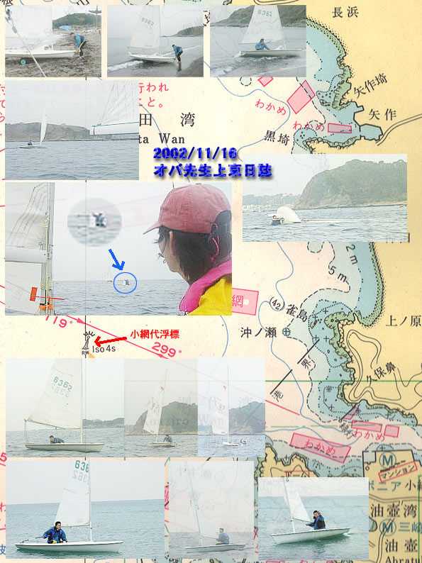 オバ先生はホッパーにチャレンジ。 ラークの艤装をしている間にちょこっと先に練習。 まずは、三戸浜を横切りシーボニア方面に アビームからクォータリーで。 そこまで何とか来たオバ先生。 海水浴を楽しまれたようだが大丈夫?と聞いたら大丈夫なので 今度は小網代浮標へ。 この日、浮標の辺りは、コンスタントに強い風と悪い波。 |