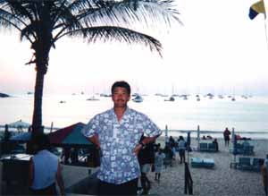 | パトンビーチの屋台街にて。 いろんな物が沢山ありました。 その外は別の意味でいろいろな者が沢山居ました。 上右 カロンビーチの恐竜のおしゃれな店 外には本物の象もいました。 左 カタビーチリゾートからビーチへのエントリー口 米粒程度になっている沖の沖の向こう側くらいが 我々の船の停泊場所。 |