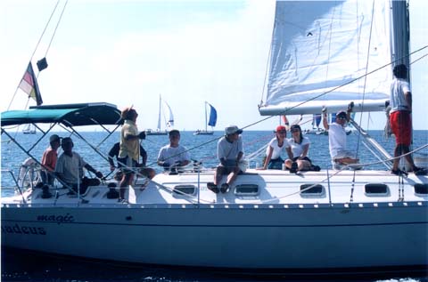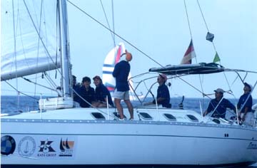 「本部船アホんだらのようにバカでかいから!!」って某先輩に耳にタコが出来るほど聞かされて行ったのですが、思ったより小さくて・・・ 話によると、空母エンタープライズくらいで本部船の近くはブランケになってしまうとか!? 確かに2001年はいつもより小さかったらしいですが・・・ |