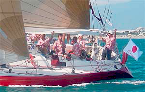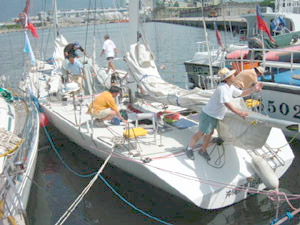 | LULU(J-120) 台湾WANGさんのチームMOTIVATIONと二艇で出場 台湾付近の海域を唯一よく知っているチーム また、日本入国のため石垣まで回航し下見は万全 |
