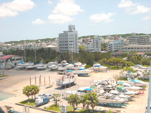 | 上・ドリーム マストトップからの宜野湾マリーナ 上原君撮影