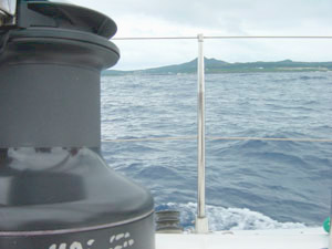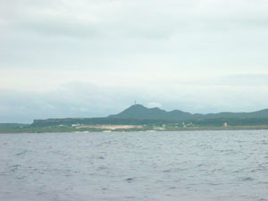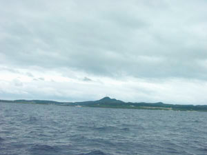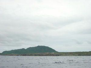 与那国島が見えてからの記念写真。 ついにやって来た日本最西端の島! 島の北方を回って西側の港を目指す。 |
